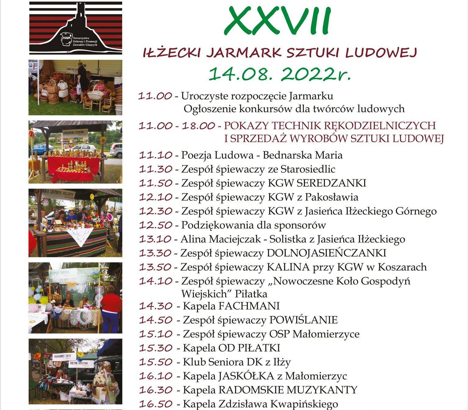 14 sierpnia, w niedzielę, odbędzie się w Iłży 27 Jarmark Sztuki Ludowej. Zapraszamy na Przystań od godz. 11.00 (można też przyjść wcześniej).