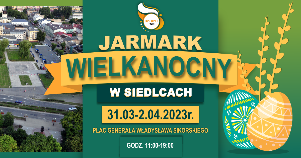 Zapraszamy na Jarmark Wielkanocny, który odbędzie się w Siedlcach na Placu im. Generała Władysława Sikorskiego 31.03-2.04.2023