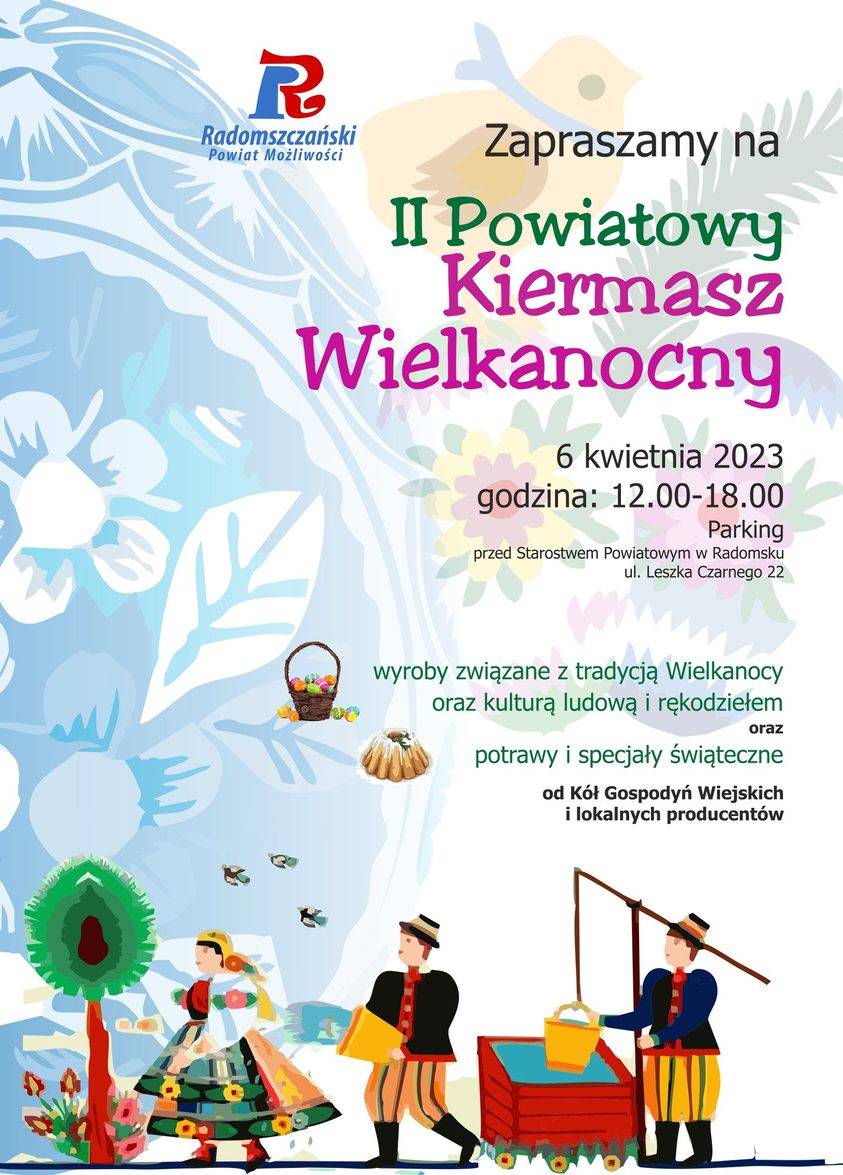 Do świąt pozostało niewiele czasu, a to oznacza, że już planować należy przedświąteczne sprawunki. Doskonałą okazją do zakupu świątecznych ozdób i smakołyków będzie tegoroczny Powiatowy Kiermasz Wielkanocny, który odbędzie się w 6 kwietnia (czwartek) w godzinach 12.00-18.00, przed budynkiem Starostwa Powiatowego w Radomsku, ul. Leszka Czarnego 22.