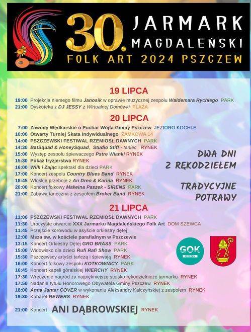 przedstawiamy program i serdecznie zapraszamy na jubileuszowy 30. Jarmark Magdaleński FOLK ART PSZCZEW 2024 wystawców rękodzieła