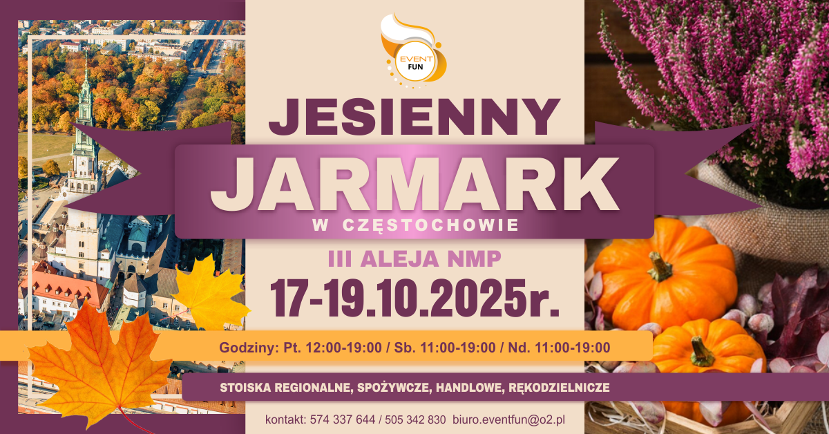 jarmarki, kiermasze, targiZapraszamy do udziału w COROCZNYM Jesiennym Jarmarku ,17-19.10, III Aleja NMP, Częstochowa